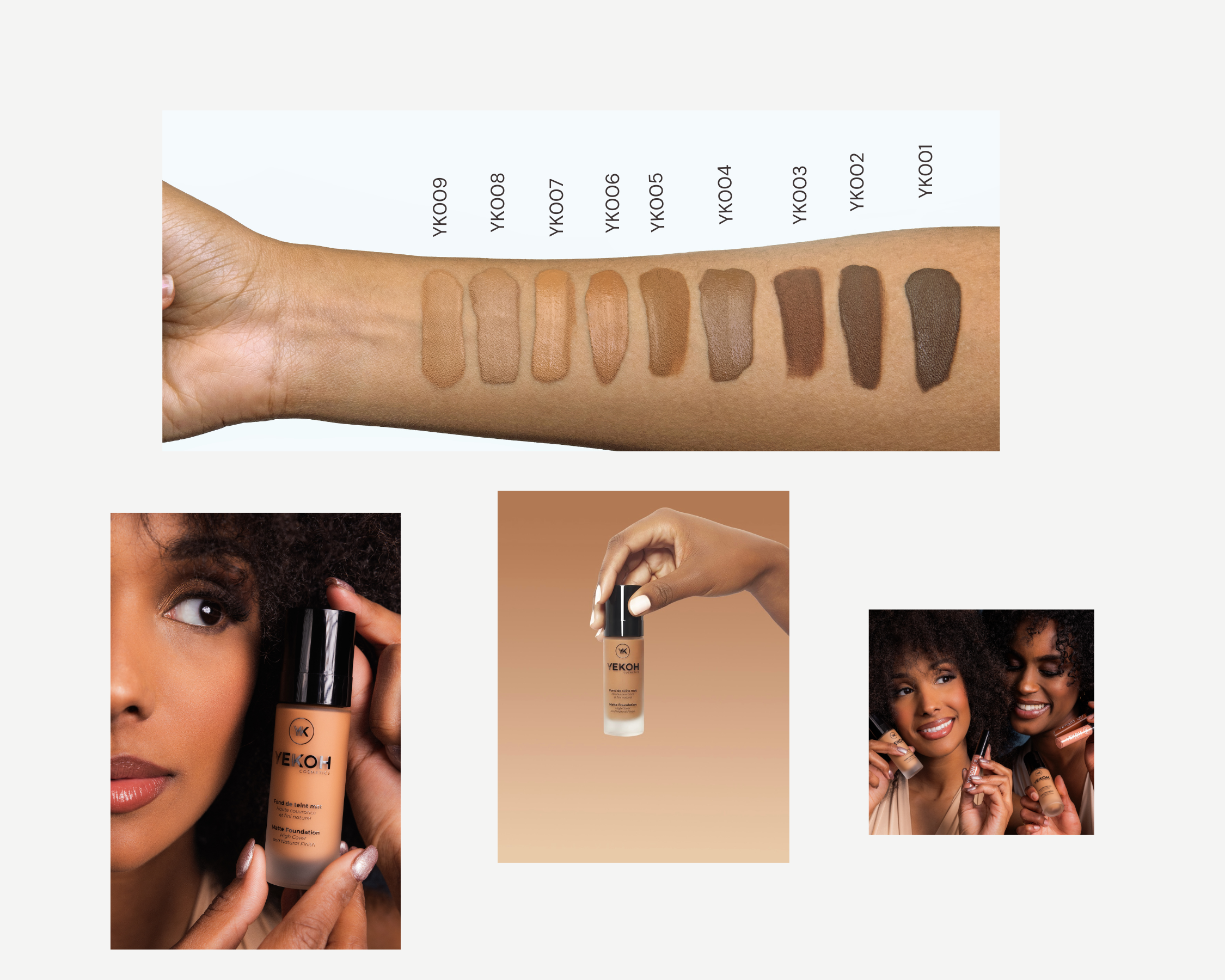 Découvrez l’excellence cosmétique avec notre fond de teint mat haute couvrance et longue tenue, formulé à partir d’une recherche scientifique approfondie sur les tons et sous-tons des peaux noires, métissées et méditerranéennes.